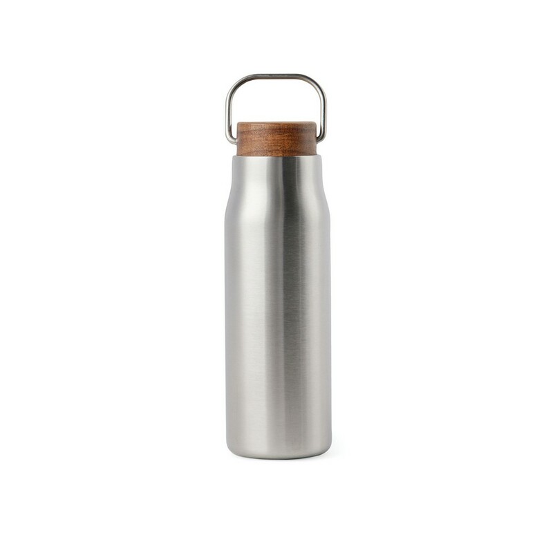 Butelka termiczna 300 ml, podwójne ścianki ze stali nierdzewnej z próżnią pomiędzy, drewniane wieczko, uchwyt, wykonana ze stali nierdzewnej z recyklingu, całkowita zawartość materiałów z recyklingu obliczona na podstawie wagi całkowitej przedmiotu: 69%, wyłącznie mycie ręczne