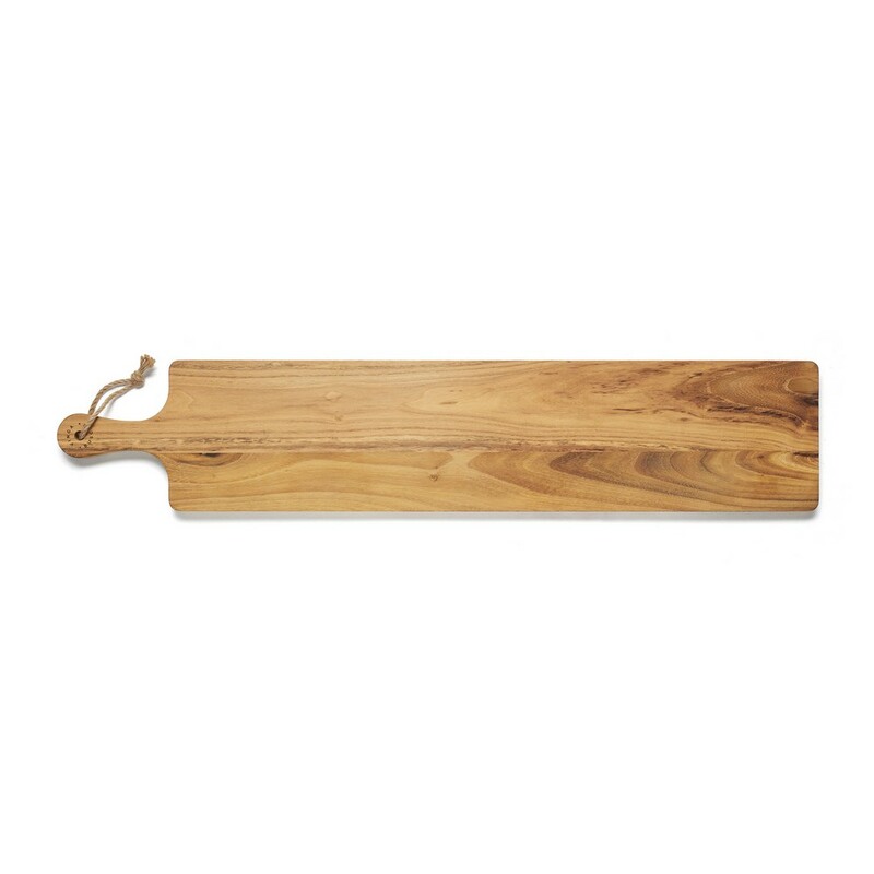 Deska do krojenia, serwowania, duży rozmiar, wykonana z drewna tekowego, które dzięki swoim naturalnym właściwościom z czasem ciemnieje, dzięki wysokiej zawartości oleju drewno jest bardzo odporne i wytrzymałe