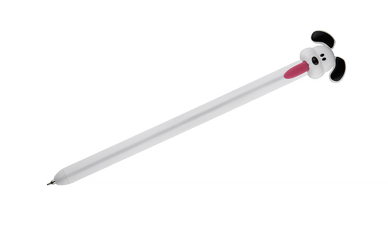 Długopis GUFI to zabawny gadżet biurowy z końcówką w kształcie głowy pieska. Mechanizm otwierania aktywowany przez pociągnięcie języka sprawia, że pisanie staje się przyjemnym i niecodziennym doświadczeniem. Wyposażony w żelowy wkład o grubości pisania 0,5 mm zapewnia płynny i równy ślad. Lakierowane wykończenie nadaje powierzchni połysk i gładkość. GUFI świetnie sprawdzi się jako kreatywny upominek reklamowy lub drobny prezent biurowy.