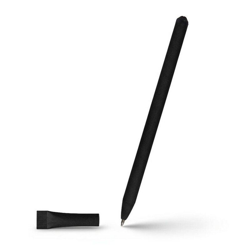Długopis z dopasowaną kolorystycznie zatyczką, wkład w niebieskim kolorze, produkt wykonany ze zrolowanego papieru