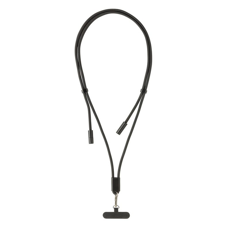 Kabel do ładowania i synchronizacji danych, smycz na telefon, wykonany z RPET z certyfikatem RCS, moc całkowita ładowania do 60W, końcówki USB-C do USB-C, całkowita zawartość materiałów z recyklingu obliczona na podstawie wagi całkowitej przedmiotu: 84%