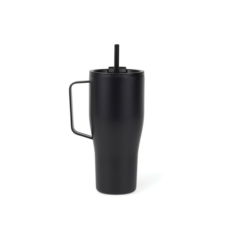 Kubek termiczny 880 ml, uchwyt, podwójne ścianki z próżnią pomiędzy, utrzymuje temperaturę napojów ciepłych do 3 godzin oraz zimnych do 16 godzin, wykonana ze stali nierdzewnej z recyklingu z certyfikatem RCS, całkowita zawartość materiałów z recyklingu obliczona w oparciu o wagę całkowitą przedmiotu: 65%, wyłącznie mycie ręczne