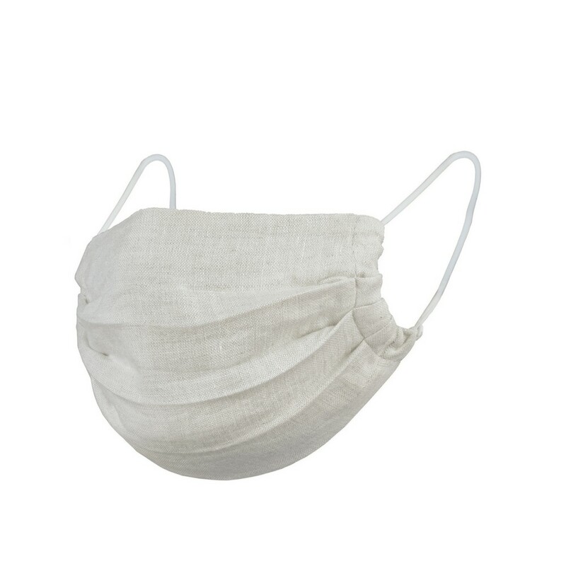Maseczka wielokrotnego użytku, niemedyczna, dwuwarstwowa, wykonana z lnu, temperatura pierwszego prania: 30 stopni Celsjusza, temperatura kolejnych prań: 40 stopni Celsjusza, maseczkę można poddawać sterylizacji wodnej w temperaturze 100 stopni Celsjusza oraz prasować w temperaturze do 200 stopni Celsjusza, posiada certyfikat OEKO-TEX Standard 100, elastyczne mocowania zapewniające komfort noszenia (wyprodukowana w Europie / made in Europe)