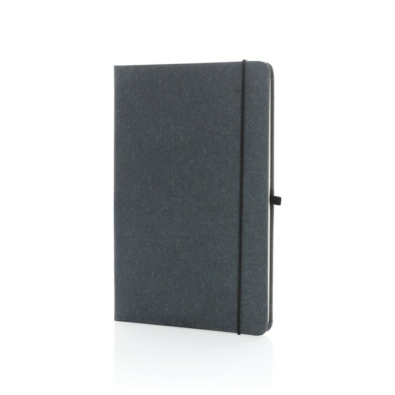 Notatnik A5 (80 białych kartek 70 g/m2 w linie), elastyczna opaska do zamykania, miejsce na przybory do pisania, okładka wykonana ze skóry pochodzącej z recyklingu, ślad węglowy produktu: 0,47 kg CO2