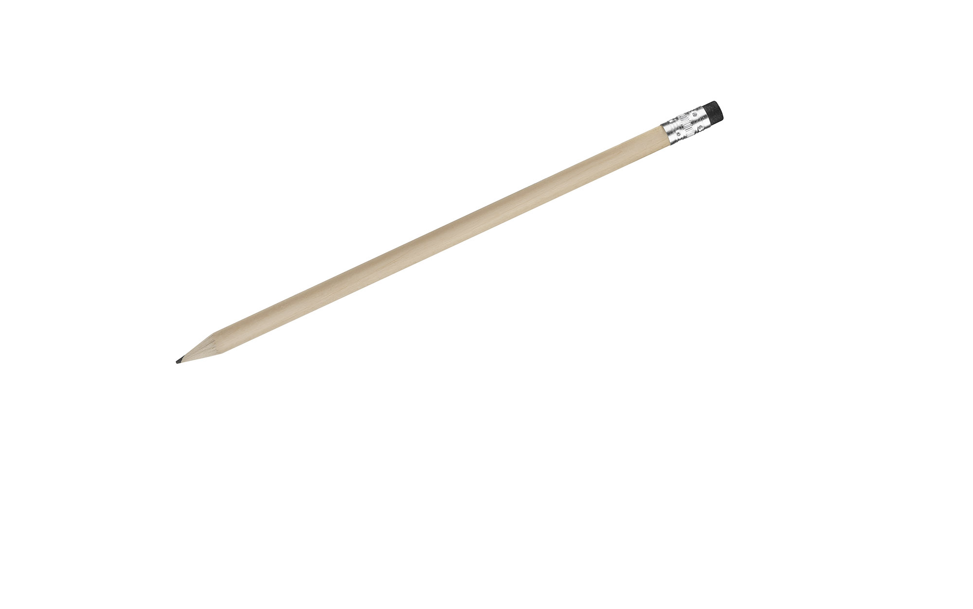 Klasyczny, drewniany ołówek z gumką. Twardość HB. Ołówek zatemperowany. Logo wygrawerujemy lub nadrukujemy na powierzchni ołówka.