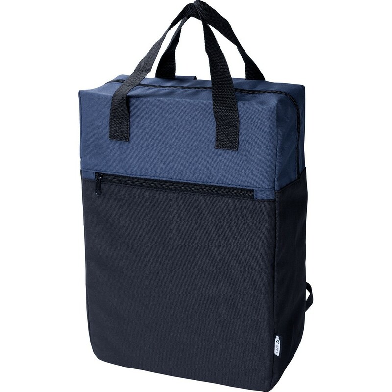 Plecak wykonany z RPET, duża komora, przestronna przegroda główna, kieszeń przednia zapinana na zamek
