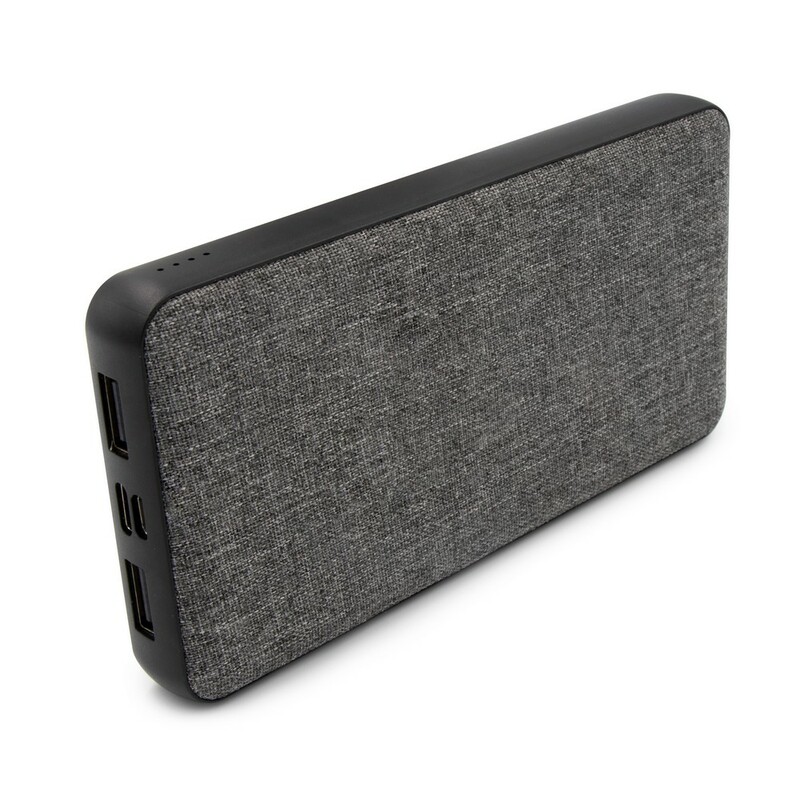Power bank 8000 mAh z frontem wykonanym z RPET, 4 diody wskazujące poziom naładowania, 2 wyjścia USB (5V/2A), 2 wejścia (5V/2A): micro USB oraz USB-C, kabel micro USB w komplecie