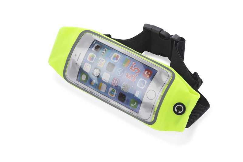 Sportowa elastyczna torebka biodrowa TROTE przyda się każdemu kto lubi aktywnie spędzać czas. Jaskrawy kolor oraz elementy z taśmy odblaskowej zapewnią każdemu użytkownikowi widoczność po zmroku. Torebka wyposażona jest w kieszonkę z wygodnym okienkiem na telefon, dzięki któremu łatwo i szybko można sprawdzić ważne informacje na telefonie. Dodatkowo torebka ma wyjście na słuchawki.