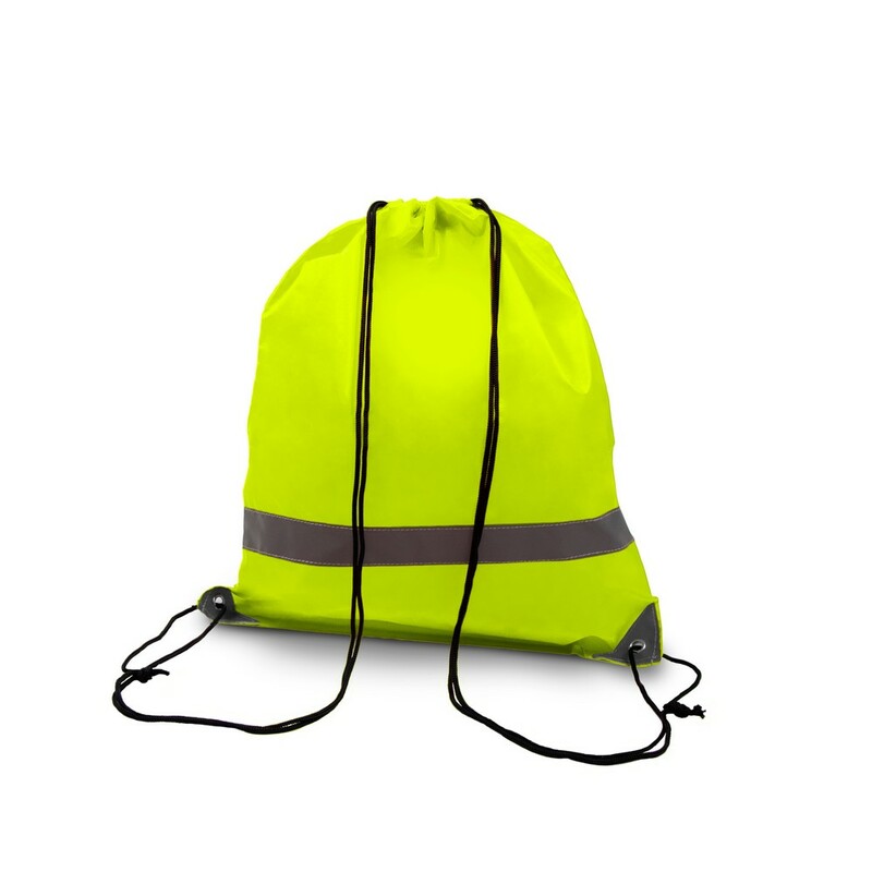 Worek ze sznurkiem umożliwiającym noszenie na plecach, wzmocnione narożniki zmniejszają ryzyko rozdarcia materiału, pomieści drobne zakupy lub strój sportowy na siłownię, na froncie połyskliwy pasek, produkt wykonany z poliestru 190T. Wyłącznie do użytku promocyjnego.